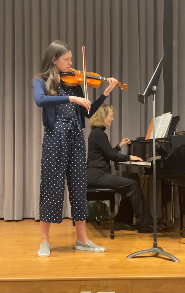 I love to bake cakes. This is the one I made for my mom’s birthday in DecemberA violin recital last yearHiking in San DiegoMe with a few of my teammates (pre covid)