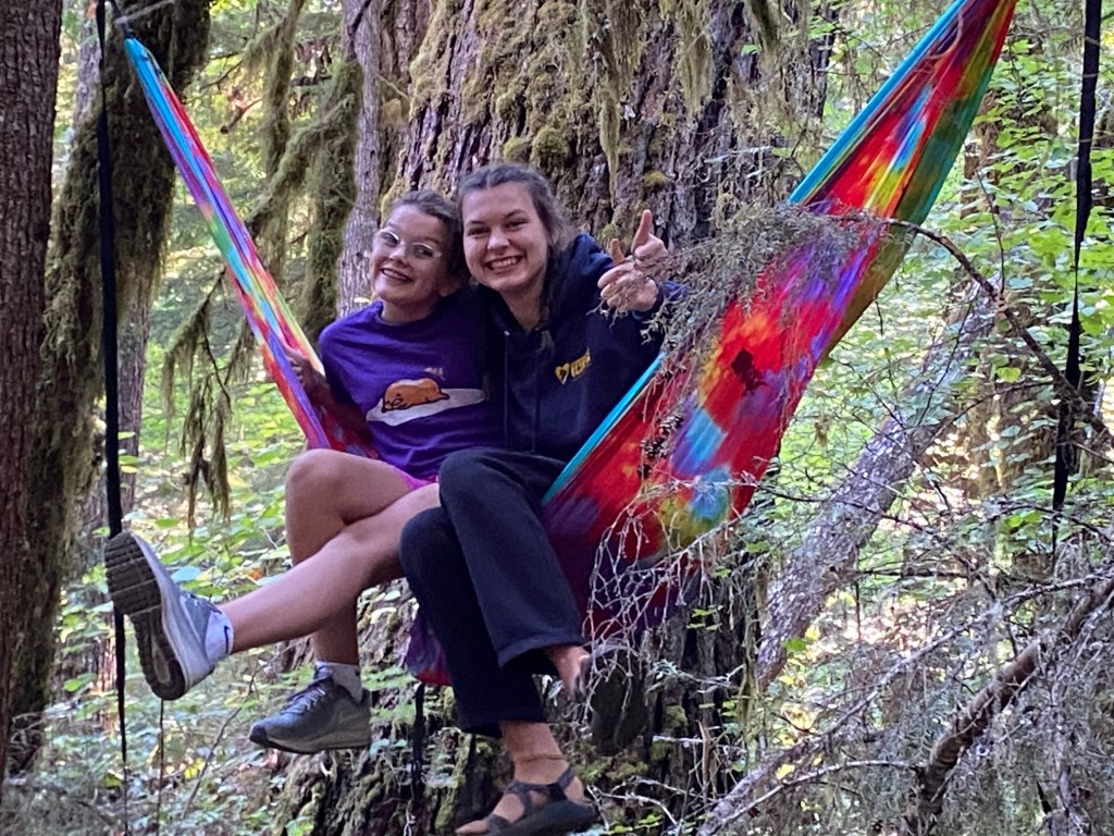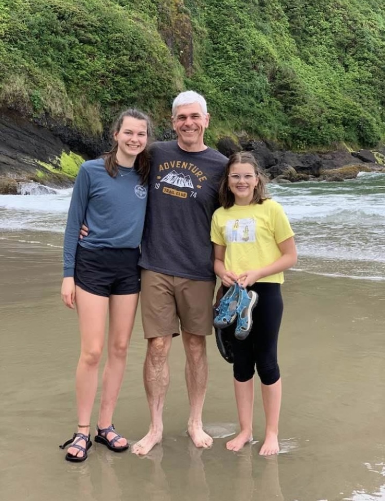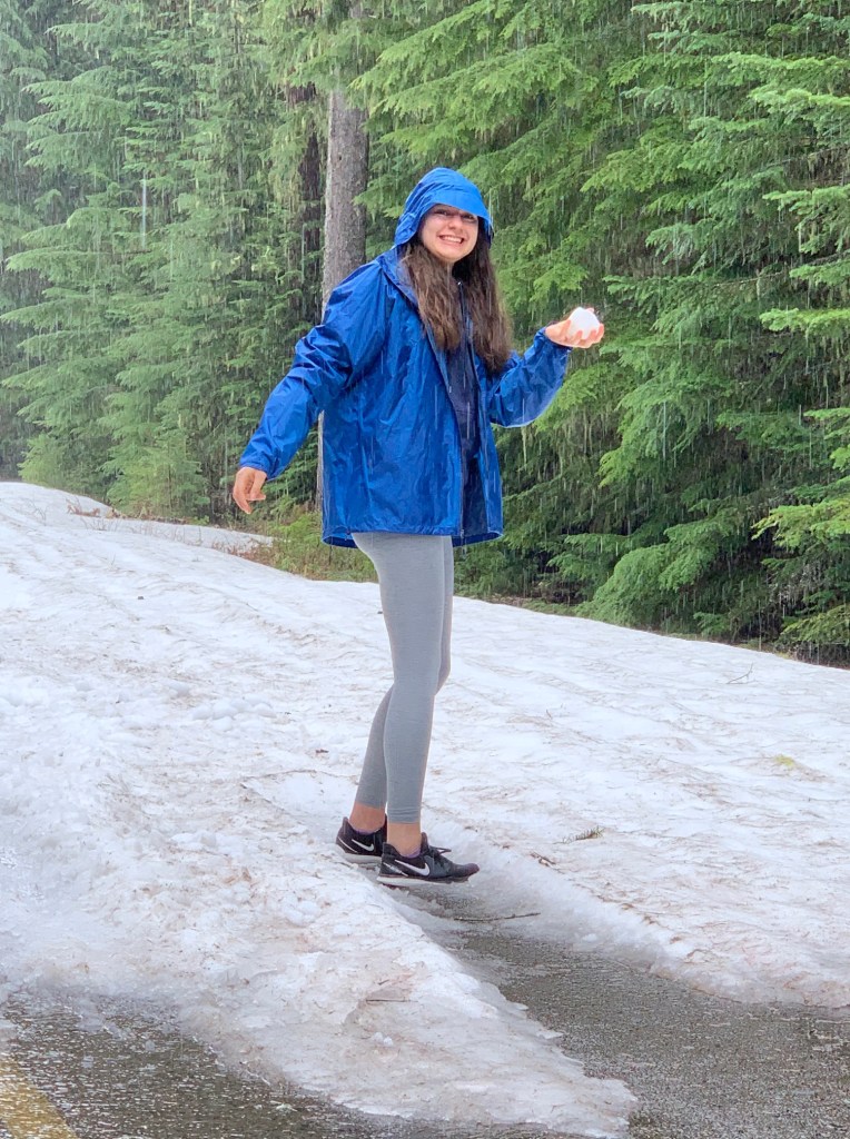 My dad, my sister, and me at Hobbit Beach I love camping in the summer!I found the last remaining snow this March near BendBored while in quarantine activities